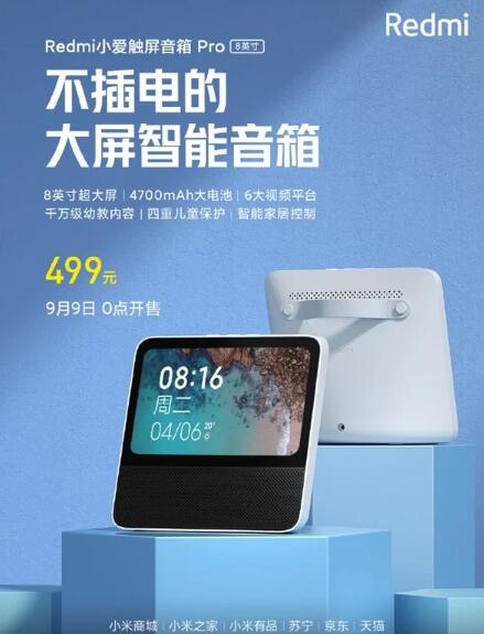Redmi XiaoAI触摸屏扬声器Pro在中国的售价为499元人民币,约合73美元,将于9月9日开始发售。