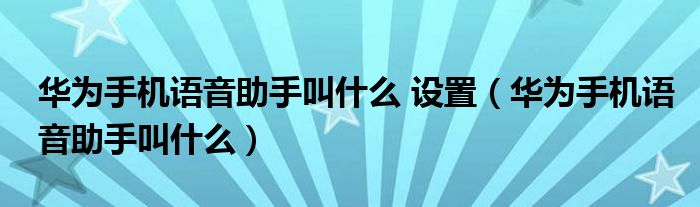 华为手机语音助手叫什么 设置(华为手机语音助手叫什么)