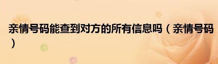 亲情号码能查到对方的所有信息吗(亲情号码)