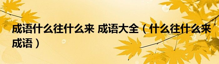 大家好,小晋来为大家解答以下问题,关于成语什么往什么来 成语大全,什么往什么来成语很多人还不知道,今天让我们一起来看看吧!