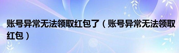 大家好,小晋来为大家解答以下问题,关于账号异常无法领取红包了,账号异常无法领取红包很多人还不知道,今天让我们一起来看看吧!