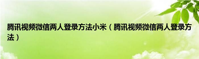 大家好,小晋来为大家解答以下问题,关于腾讯视频微信两人登录方法小米,腾讯视频微信两人登录方法很多人还不知道,今天让我们一起来看看吧!