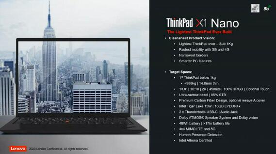 有史以来最轻的ThinkPad,具有大量电池寿命。 13英寸ThinkPad X1 Nano的重量不到1千克