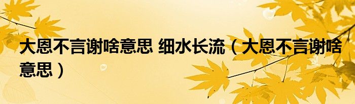 大家好,小晋来为大家解答以下问题,关于大恩不言谢啥意思 细水长流,大恩不言谢啥意思很多人还不知道,今天让我们一起来看看吧!