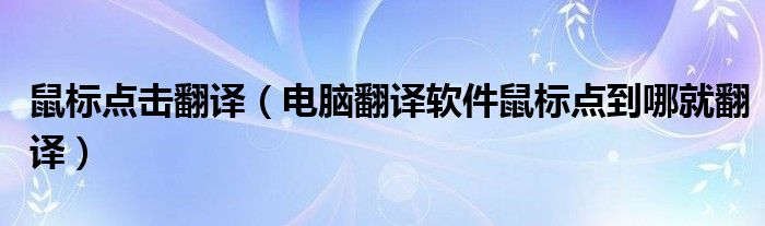 关于鼠标点击翻译,电脑翻译软件鼠标点到哪就翻译这个很多人还不知道,今天菲菲来为大家解答以上的问题,现在让我们一起来看看吧!