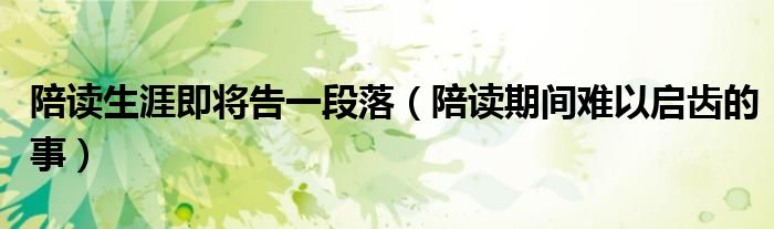 关于陪读生涯即将告一段落,陪读期间难以启齿的事这个很多人还不知道,今天菲菲来为大家解答以上的问题,现在让我们一起来看看吧!
