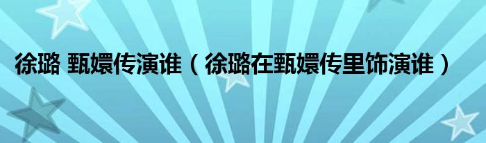 徐璐 甄嬛传演谁(徐璐在甄嬛传里饰演谁)