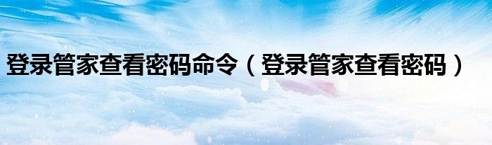关于登录管家查看密码命令,登录管家查看密码这个很多人还不知道,今天菲菲来为大家解答以上的问题,现在让我们一起来看看吧!