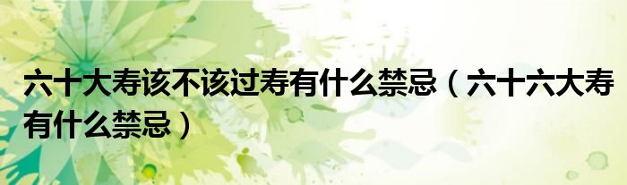 大家好,小晋来为大家解答以下问题,关于六十大寿该不该过寿有什么禁忌,六十六大寿有什么禁忌很多人还不知道,今天让我们一起来看看吧!