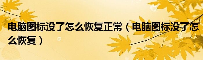 关于电脑图标没了怎么恢复正常,电脑图标没了怎么恢复这个很多人还不知道,今天菲菲来为大家解答以上的问题,现在让我们一起来看看吧!
