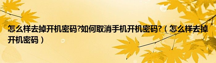 大家好,来宝来为大家解答以下问题,怎么样去掉开机密码?如何取消手机开机密码?,怎么样去掉开机密码很多人还不知道,今天让我们一起来看看吧!
