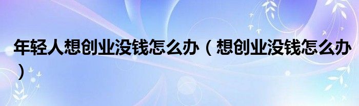 大家好,小晋来为大家解答以下问题,关于年轻人想创业没钱怎么办,想创业没钱怎么办很多人还不知道,今天让我们一起来看看吧!