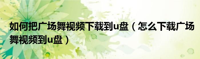 关于如何把广场舞视频下载到u盘,怎么下载广场舞视频到u盘这个很多人还不知道,今天菲菲来为大家解答以上的问题,现在让我们一起来看看吧!