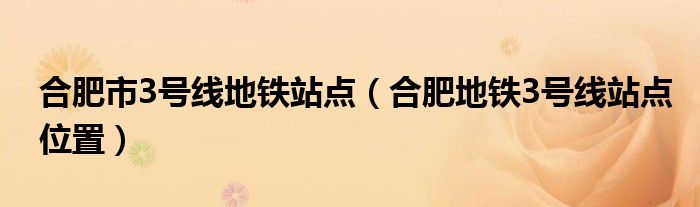 关于合肥市3号线地铁站点,合肥地铁3号线站点位置这个很多人还不知道,今天菲菲来为大家解答以上的问题,现在让我们一起来看看吧!