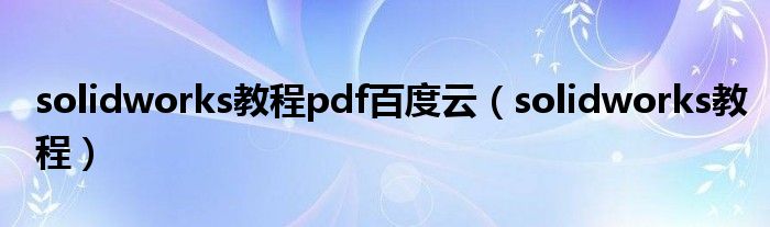 solidworks教程pdf百度云(solidworks教程)