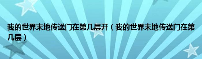 关于我的世界末地传送门在第几层开,我的世界末地传送门在第几层这个很多人还不知道,今天菲菲来为大家解答以上的问题,现在让我们一起来看看吧!