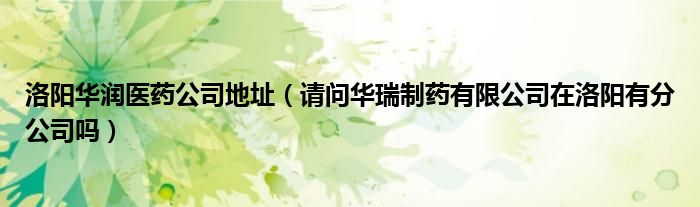 洛阳华润医药公司地址(请问华瑞制药有限公司在洛阳有分公司吗)