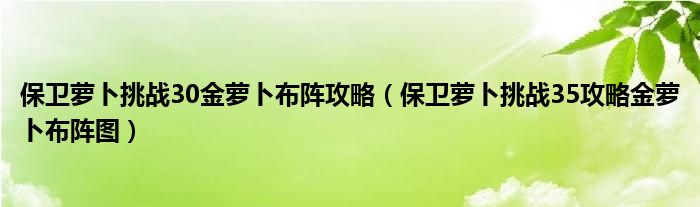 保卫萝卜挑战30金萝卜布阵攻略,保卫萝卜挑战35攻略金萝卜布阵图很多人还不知道,乐乐来为大家解答以上问题,现在让我们一起来看看吧!