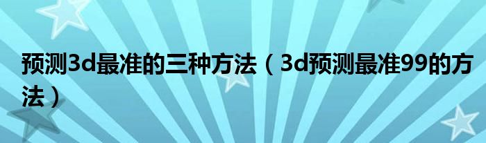 关于预测3d最准的三种方法,3d预测最准99的方法这个很多人还不知道,今天菲菲来为大家解答以上的问题,现在让我们一起来看看吧!
