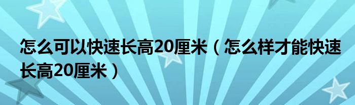 关于怎么可以快速长高20厘米,怎么样才能快速长高20厘米这个很多人还不知道,今天菲菲来为大家解答以上的问题,现在让我们一起来看看吧!
