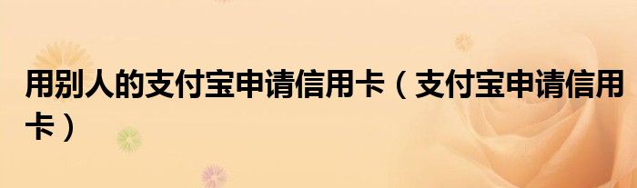 大家好,小晋来为大家解答以下问题,关于用别人的支付宝申请信用卡,支付宝申请信用卡很多人还不知道,今天让我们一起来看看吧!