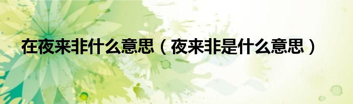 大家好,小晋来为大家解答以下问题,关于在夜来非什么意思,夜来非是什么意思很多人还不知道,今天让我们一起来看看吧!
