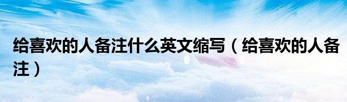 大家好,小晋来为大家解答以下问题,关于给喜欢的人备注什么英文缩写,给喜欢的人备注很多人还不知道,今天让我们一起来看看吧!