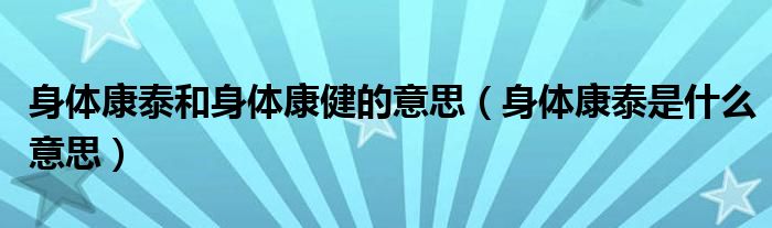 大家好,小晋来为大家解答以下问题,关于身体康泰和身体康健的意思,身体康泰是什么意思很多人还不知道,今天让我们一起来看看吧!