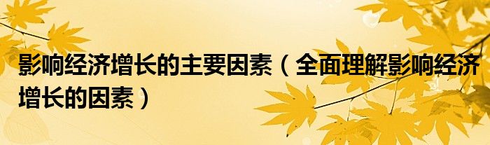 影响经济增长的主要因素(全面理解影响经济增长的因素)
