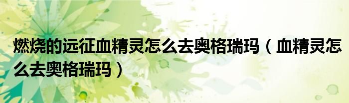 关于燃烧的远征血精灵怎么去奥格瑞玛,血精灵怎么去奥格瑞玛这个很多人还不知道,今天菲菲来为大家解答以上的问题,现在让我们一起来看看吧!