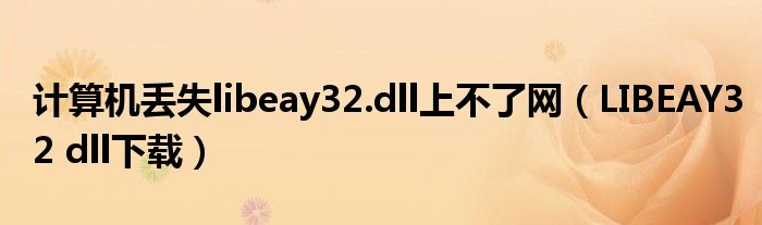 计算机丢失libeay32.dll上不了网,LIBEAY32 dll下载很多人还不知道,乐乐来为大家解答以上问题,现在让我们一起来看看吧!