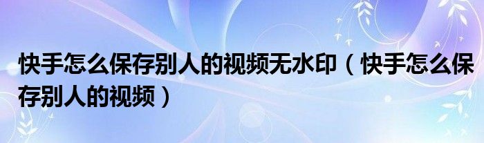 快手怎么保存别人的视频无水印(快手怎么保存别人的视频)