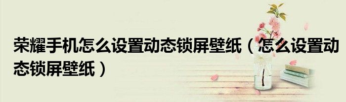 大家好,小晋来为大家解答以下问题,关于荣耀手机怎么设置动态锁屏壁纸,怎么设置动态锁屏壁纸很多人还不知道,今天让我们一起来看看吧!