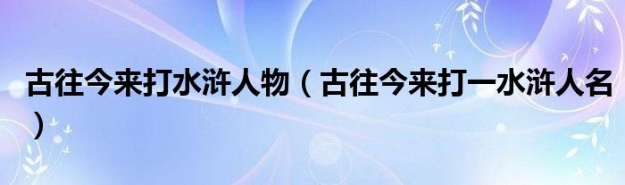 关于古往今来打水浒人物,古往今来打一水浒人名这个很多人还不知道,今天菲菲来为大家解答以上的问题,现在让我们一起来看看吧!