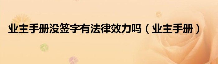 关于业主手册没签字有法律效力吗,业主手册这个很多人还不知道,今天菲菲来为大家解答以上的问题,现在让我们一起来看看吧!