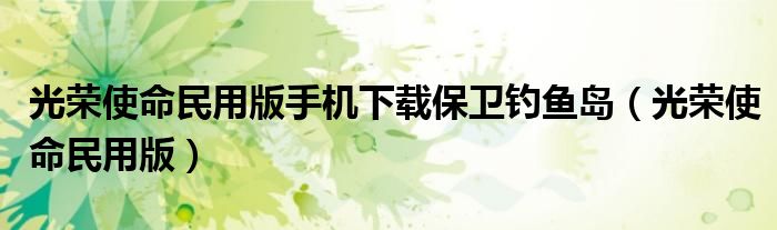 光荣使命民用版手机下载保卫钓鱼岛(光荣使命民用版)