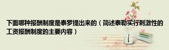关于下面哪种报酬制度是泰罗提出来的,简述泰勒实行刺激性的工资报酬制度的主要内容这个很多人还不知道,今天菲菲来为大家解答以上的问题,现在让我们一起来看看吧!