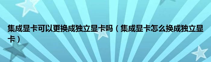 关于集成显卡可以更换成独立显卡吗,集成显卡怎么换成独立显卡这个很多人还不知道,今天菲菲来为大家解答以上的问题,现在让我们一起来看看吧!