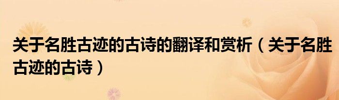 关于关于名胜古迹的古诗的翻译和赏析,关于名胜古迹的古诗这个很多人还不知道,今天菲菲来为大家解答以上的问题,现在让我们一起来看看吧!