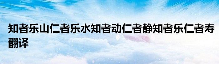 关于知者乐山仁者乐水知者动仁者静知者乐仁者寿翻译这个很多人还不知道,今天菲菲来为大家解答以上的问题,现在让我们一起来看看吧!