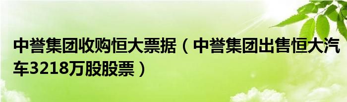 大家好,来宝来为大家解答以下问题,中誉集团收购恒大票据,中誉集团出售恒大汽车3218万股股票很多人还不知道,今天让我们一起来看看吧!