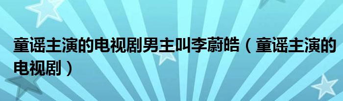 关于童谣主演的电视剧男主叫李蔚皓,童谣主演的电视剧这个很多人还不知道,今天菲菲来为大家解答以上的问题,现在让我们一起来看看吧!