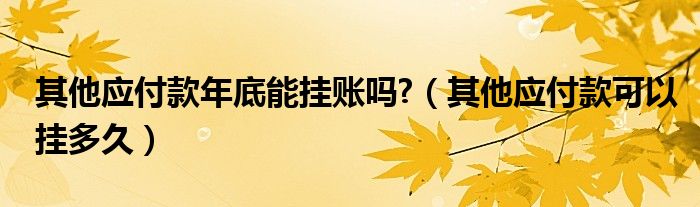 关于其他应付款年底能挂账吗?,其他应付款可以挂多久这个很多人还不知道,今天菲菲来为大家解答以上的问题,现在让我们一起来看看吧!