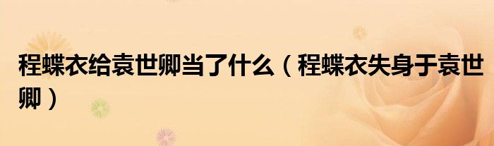 最佳答案关于程蝶衣给袁世卿当了什么,程蝶衣失身于袁世卿这个很多人还不知道,今天菲菲来为大家解答以上的问题,现在让我们一起来看看吧!1、袁世卿要蝶衣做他的红颜知己。2、蝶衣是矛盾的,他爱的是小楼,可是现实的冷酷让他屈从于袁,但并未对袁有过感情。3、袁四爷可以说是蝶衣一生中唯一的知己。4、袁...