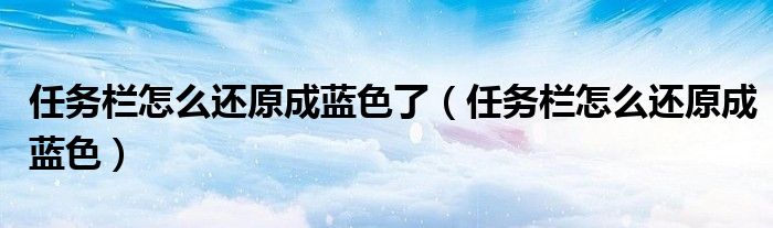 关于任务栏怎么还原成蓝色了,任务栏怎么还原成蓝色这个很多人还不知道,今天菲菲来为大家解答以上的问题,现在让我们一起来看看吧!