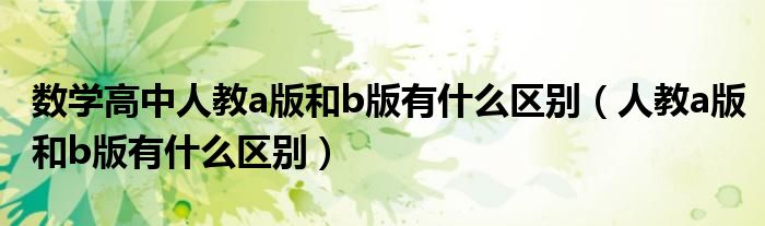 关于数学高中人教a版和b版有什么区别,人教a版和b版有什么区别这个很多人还不知道,今天菲菲来为大家解答以上的问题,现在让我们一起来看看吧!