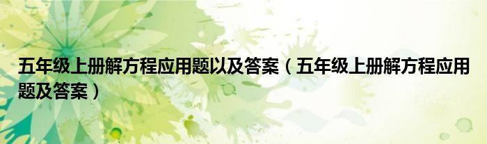 关于五年级上册解方程应用题以及答案,五年级上册解方程应用题及答案这个很多人还不知道,今天菲菲来为大家解答以上的问题,现在让我们一起来看看吧!