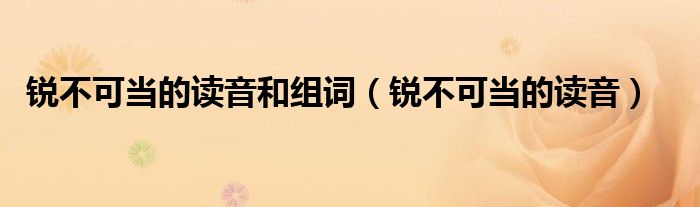 关于锐不可当的读音和组词,锐不可当的读音这个很多人还不知道,今天菲菲来为大家解答以上的问题,现在让我们一起来看看吧!