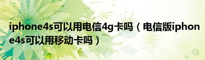 大家好,来宝来为大家解答以下问题,iphone4s可以用电信4g卡吗,电信版iphone4s可以用移动卡吗很多人还不知道,今天让我们一起来看看吧!