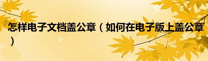 怎样电子文档盖公章(如何在电子版上盖公章)